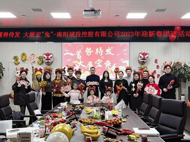 豪情歡歌辭舊歲,喜氣開篇迎新年。為進(jìn)一步豐富員工文化娛樂生活,營(yíng)造和諧穩(wěn)定、積極向上、團(tuán)結(jié)奮進(jìn)的工作氛圍,1月15日,南陽城投控股有限公司組織開展了以“蓄勢(shì)待發(fā)大展宏‘兔’”為主題的迎新春趣味團(tuán)建活動(dòng)。城投控股全體員工參加了此次新春團(tuán)建活動(dòng)。