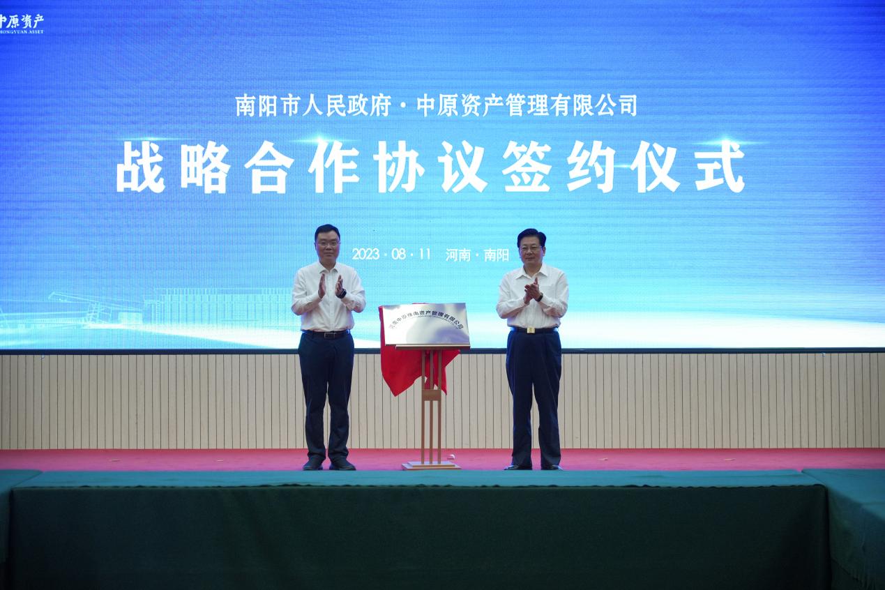 揭牌儀式舉行前,南陽市政府與中原資產管理有限公司舉行了戰略合作協議簽約儀式,雙方簽訂了戰略合作協議。
