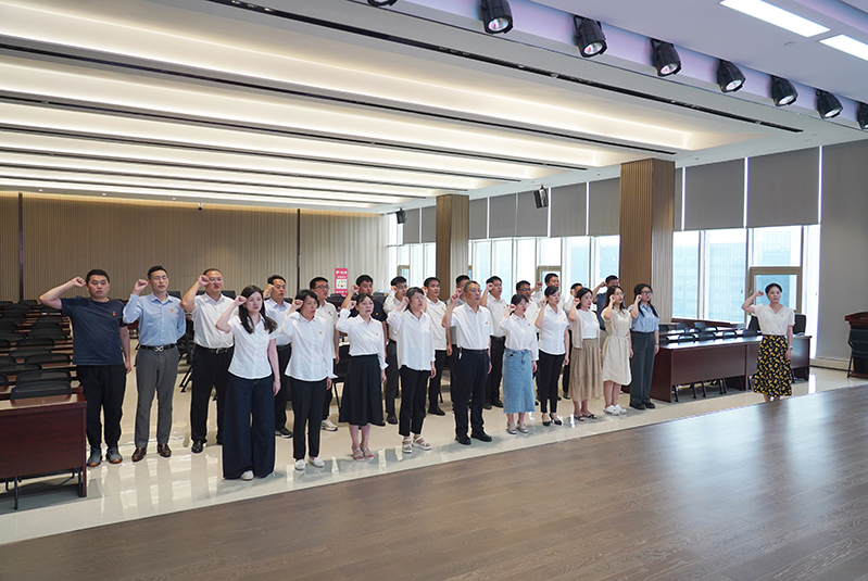 最后,機關黨支部全體黨員在支部書記的帶領下舉起右手,重溫入黨誓詞,再一次用錚錚誓言詮釋入黨初心。