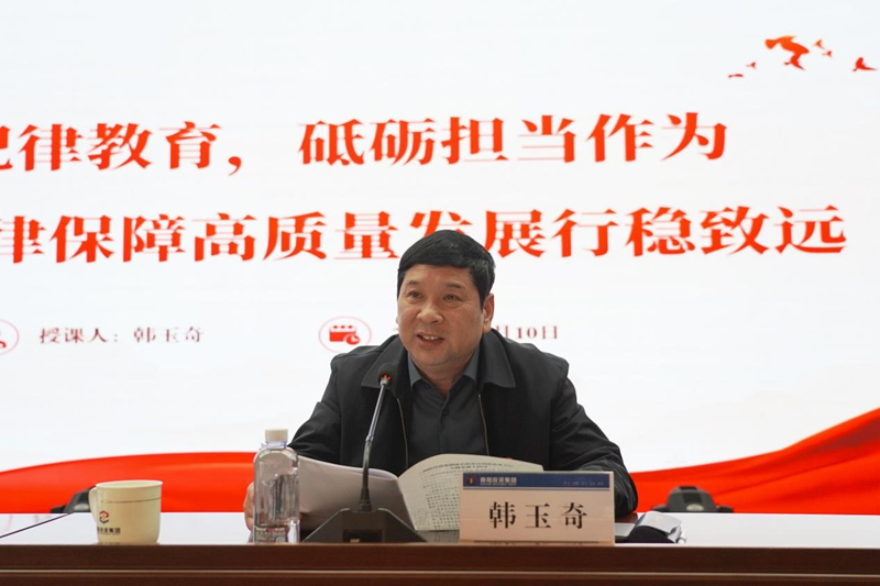 在隨后的書記講黨課環節,韓玉奇以《深化紀律教育 砥礪擔當作為 以嚴明紀律保障高質量發展行穩致遠》為題,深入闡釋了加強紀律建設的重要意義,重點圍繞“六大紀律”,以實際案例為依托,剖析了反面典型案例的問題、原因、危害和啟示教訓,并結合集團經營發展實際,要求在項目建設、投融資活動、財務審計、人才隊伍培育等關鍵環節做實紀律保障,把黨紀學習教育同中心工作和集團發展聯系在一起,為營造風清氣正的政治生態和良好的工作環境而努力奮斗。