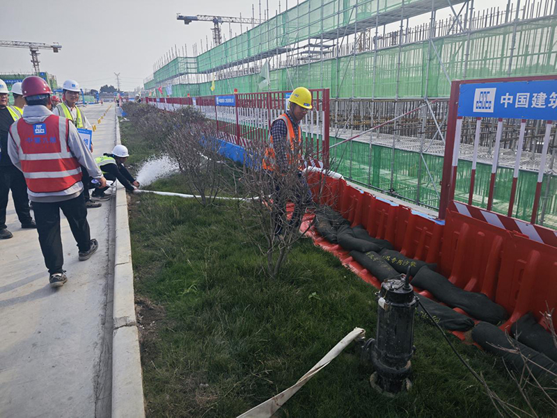 緊盯重點部位環節,加大巡查排險力度,開展建筑工地汛期安全專項大檢查。防汛一級應急響應期間,著重檢查項目電箱安全及二次提升泵站、鼓風機房、綜合樓、鋼筋加工廠、水解酸化池、基坑內部情況。完善工作協調機制,動態掌握應急物資儲備情況,做到底數清情況明,確保關鍵時刻能夠保障需求。用足用好沙袋、水泵等應急物資,做到能及時排水,嚴防澇水灌入。