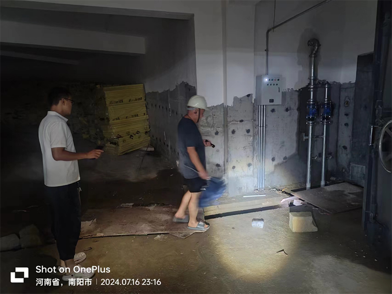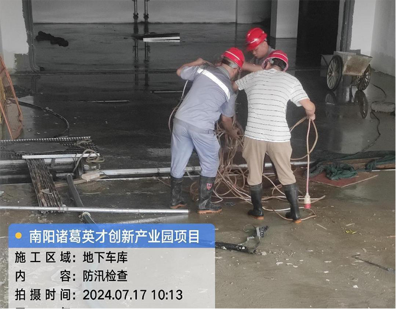 加強隱患排查,落實防范措施,把應對措施再細化,把應急搶險、防災救災各項措施做細做實做到位。針對項目地下室少量進水,安排人員及水泵加快排水力度,確保項目安全。